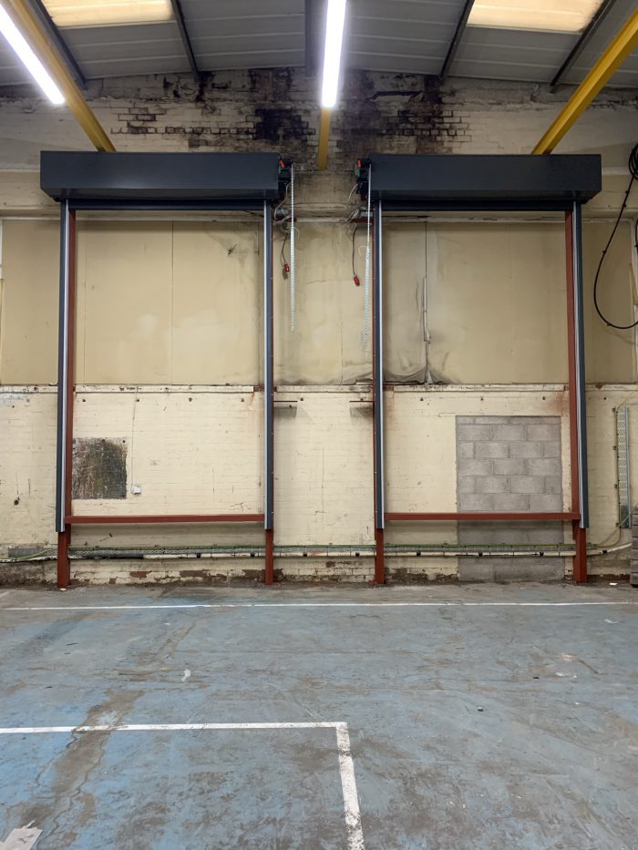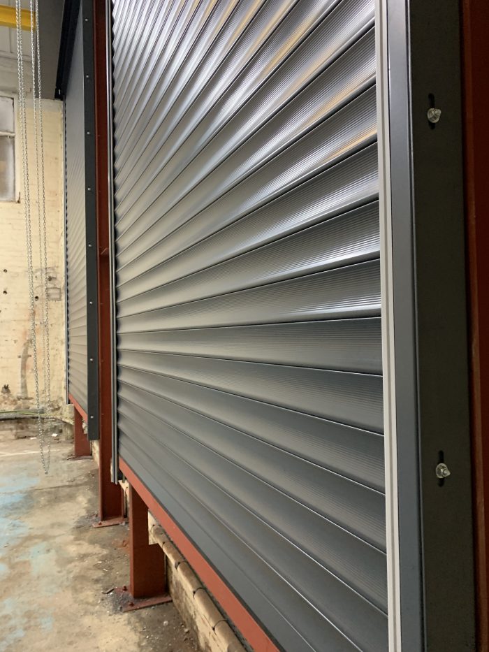 2 x GFA Twin Skin Insulted Steel Shutters to secure rear loading bays And 1 x galvanised steel roller shutter.